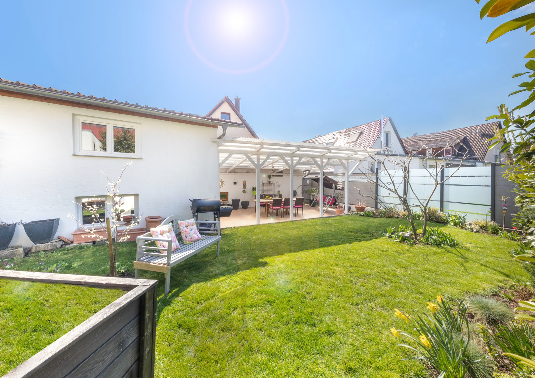 这是一栋独栋的Haus,在2019年全面彻底翻新过,带有非常大的空地,可以停下许多辆车,以及一个很大的花园。 房顶2007年翻新,太阳能面板2019年新装,全屋全新电路。整个Haus装修非常高档,适合在奔驰,保时捷,博世工作的高收入家庭。