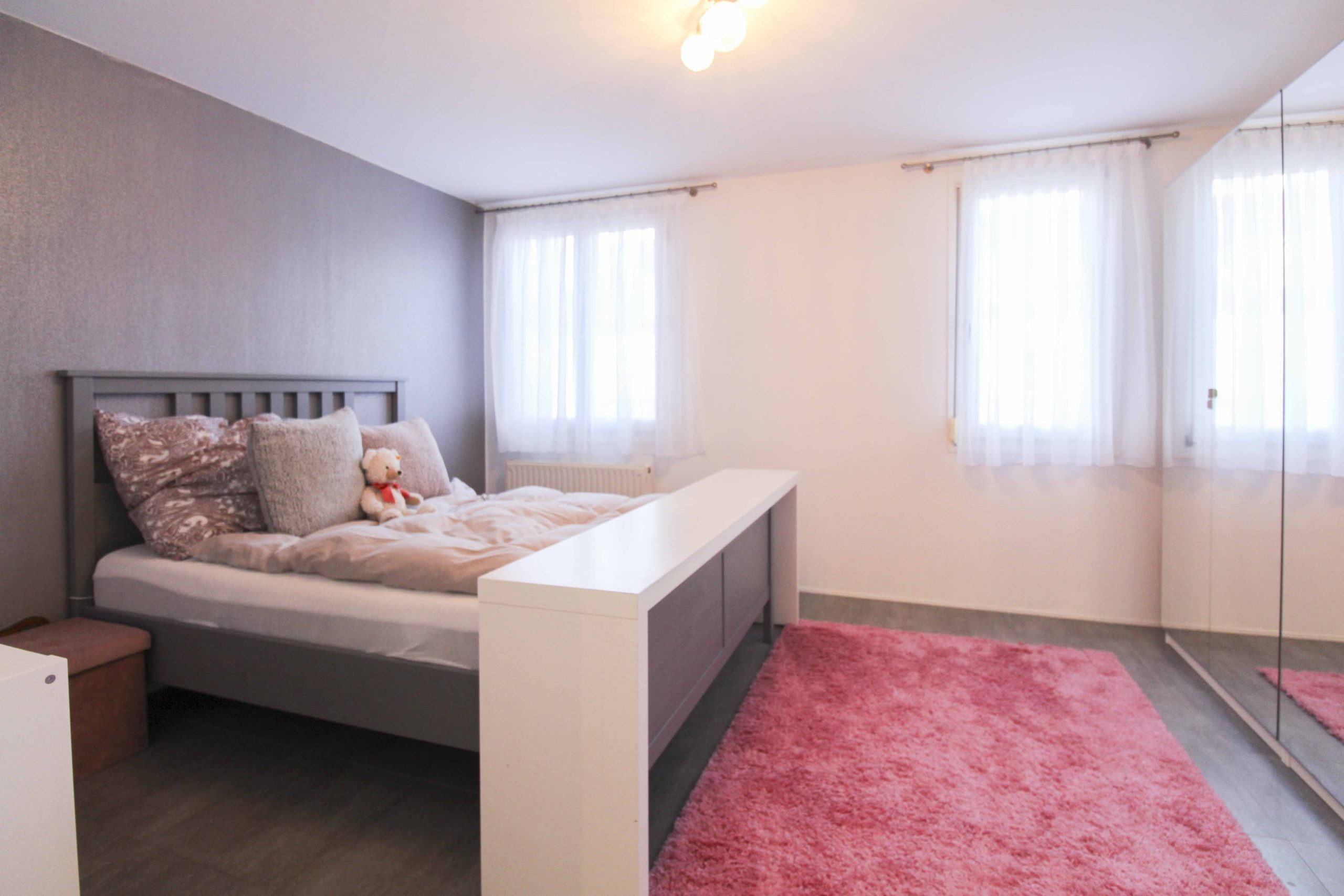住宅占地约 147 平方米。除了花园区域,您还可以使用一个露台。带露台的花园面积适中,既能让您享受户外活动,又能最大限度地减少花园维护的工作量。无论是阳光崇拜者、嬉戏玩耍的儿童还是绿手指,在这里每个人都能物有所值。您还可以在露台上度过轻松惬意的时光。地下室为住户提供了额外的储藏空间:这里还有一个房间、一个淋浴室和一个存放洗衣机和烘干机的地窖。另外还有一个阁楼,可以通过下拉式楼梯进入,里面放置了燃气锅炉。此外,该物业还有一个室外停车位和一个车库,可谓一应俱全。