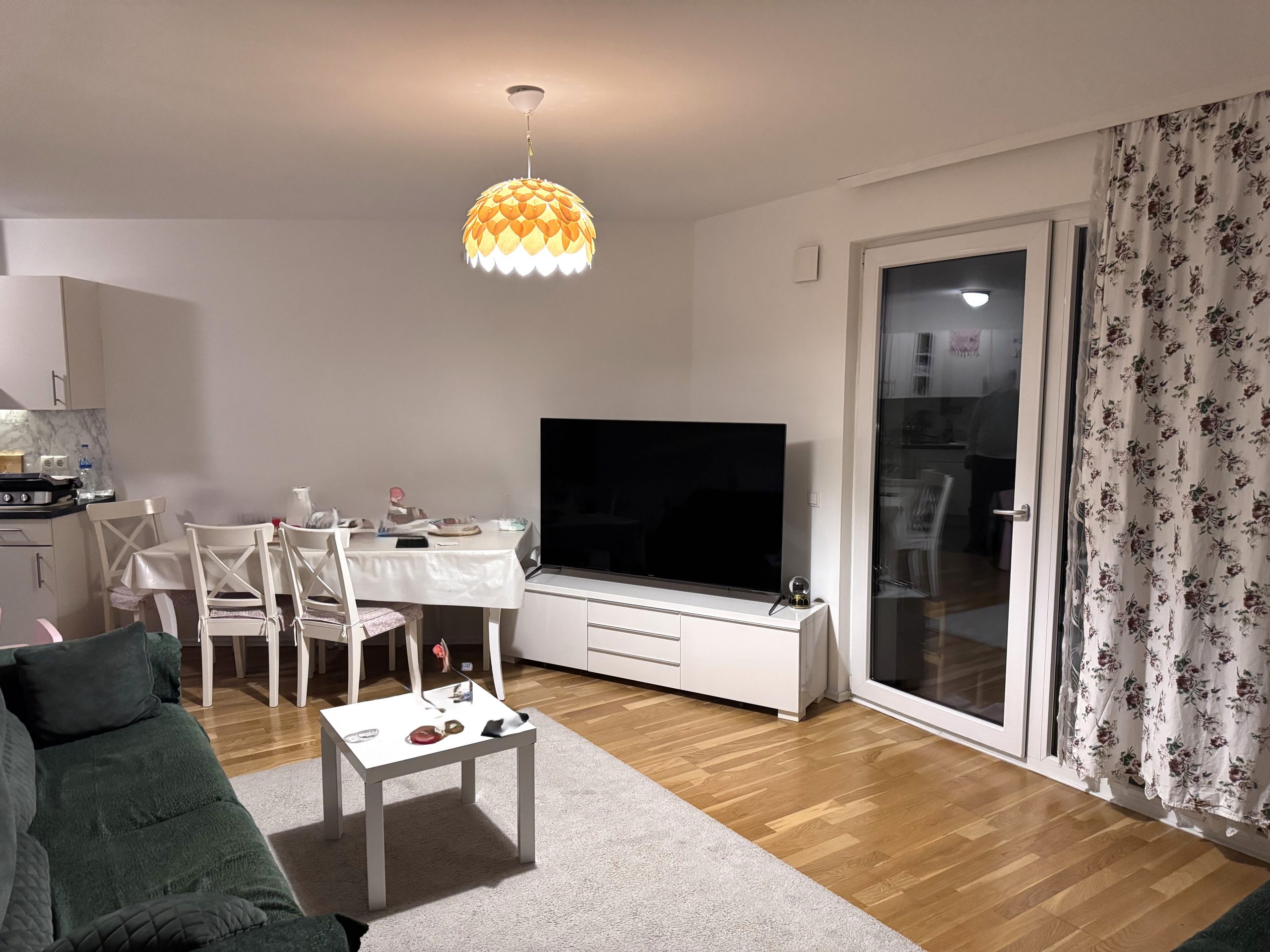 室内使用高品质材料:客厅及卧室铺设实木地板,兼具温暖质感与耐用性;厨房及浴室区域使用大规格瓷砖,易于清洁维护。开放式厨房与客厅相连,让空间更加通透,适合现代居住习惯。浴室配备浴缸,满足家庭生活的多种需求。