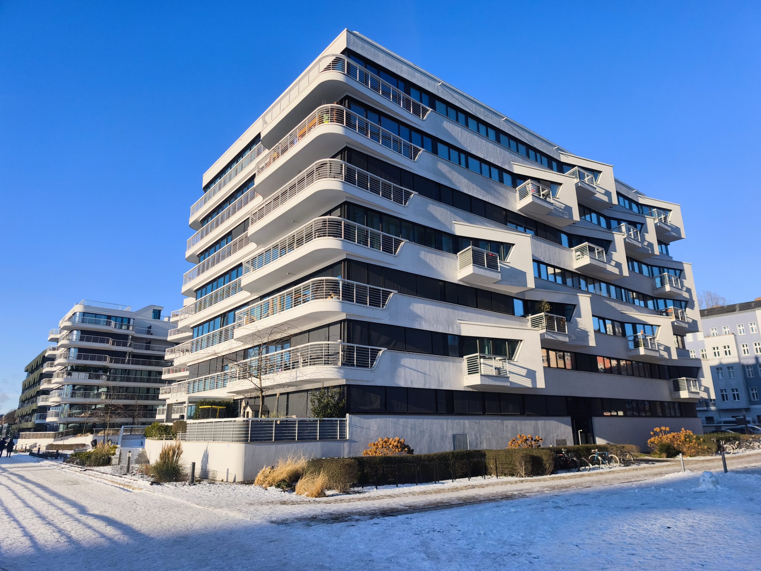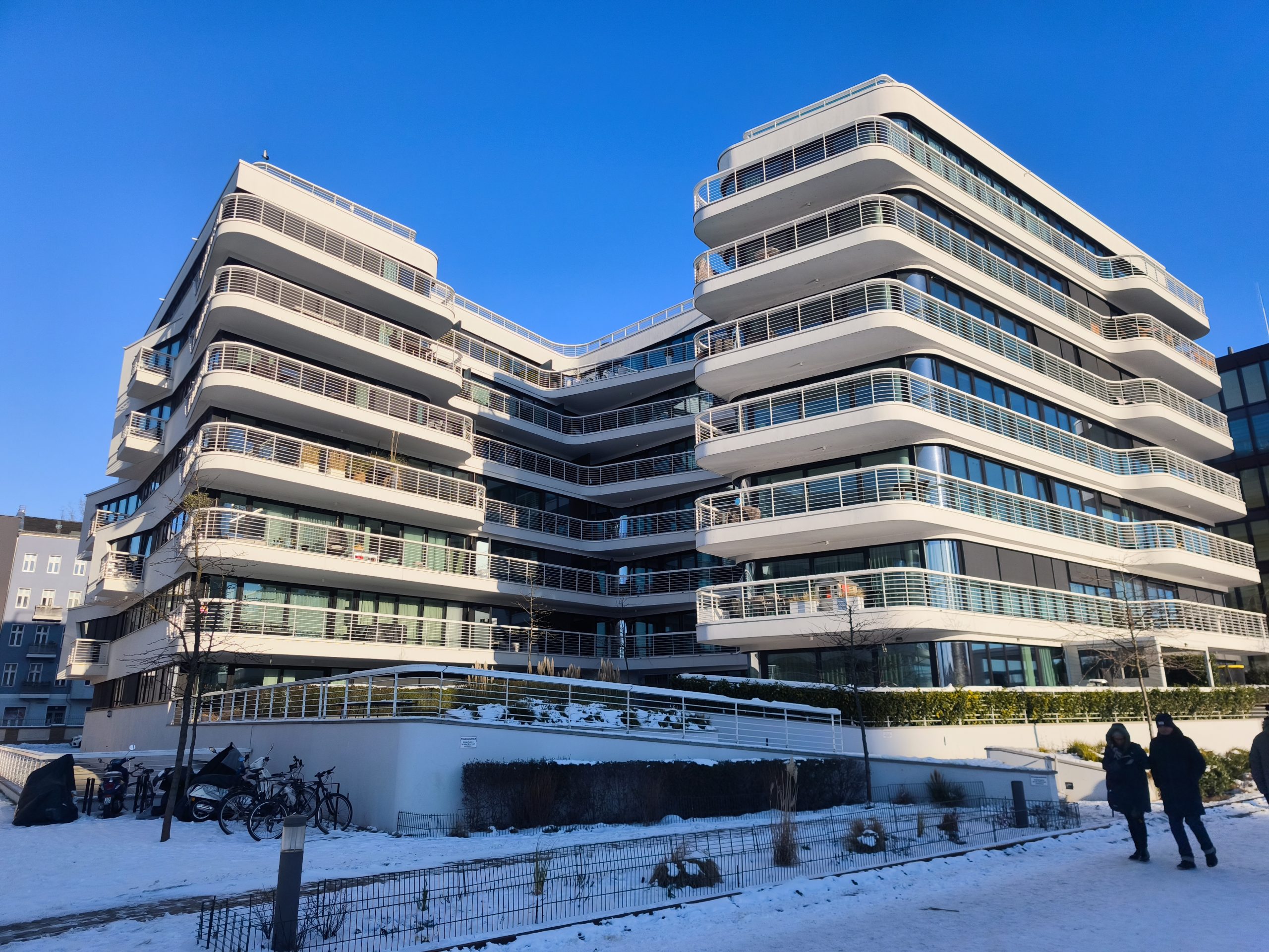 该公寓位于现代高端住宅项目 WAVE Waterside Living Berlin 内,该项目于2019年建成,建筑设计极具艺术感与现代感。项目紧邻施普雷河,以其雕塑般流畅的建筑形态著称,将都市生活与滨水环境的独特氛围完美融合,是柏林极具代表性的高品质住宅项目之一。