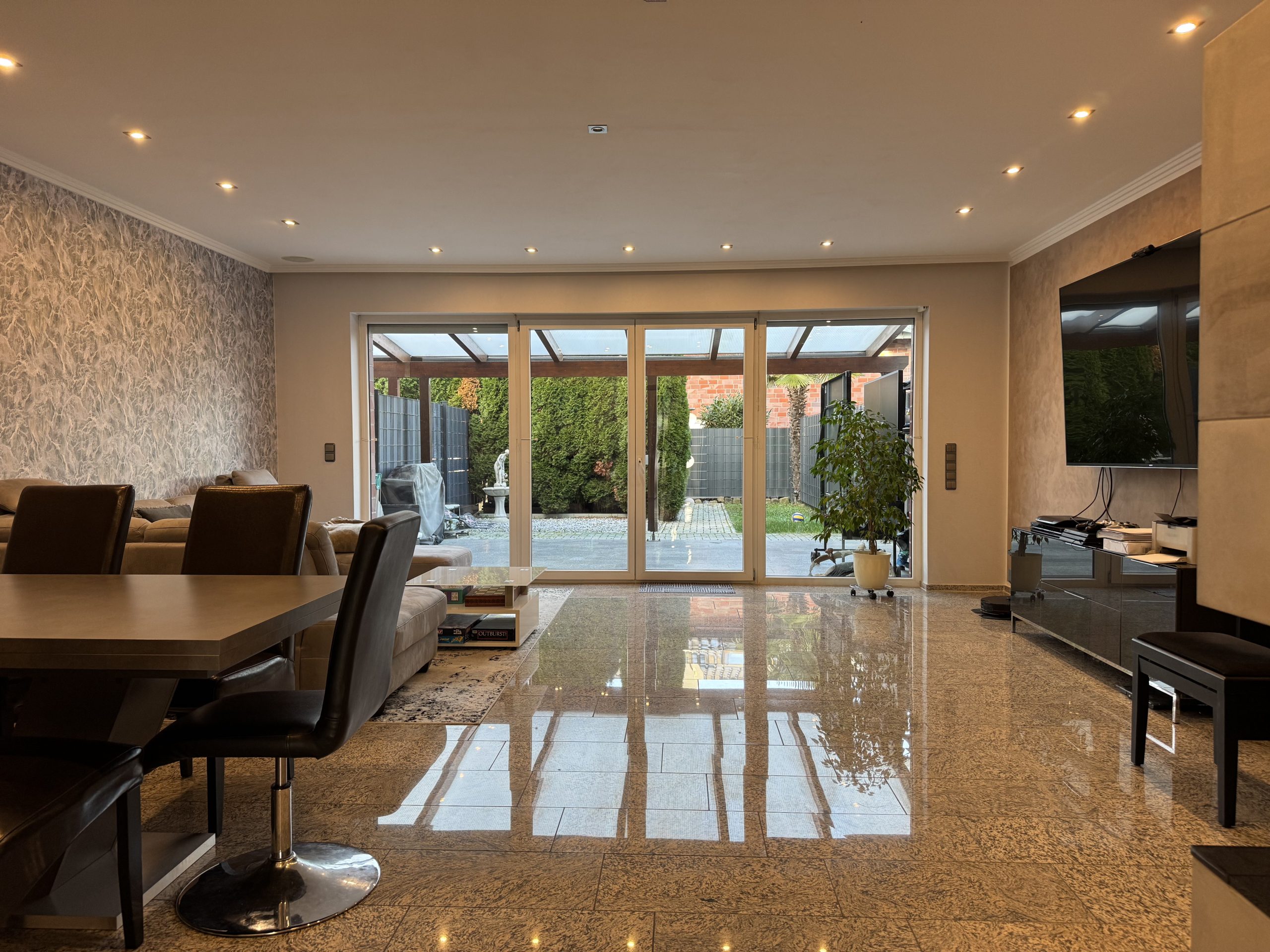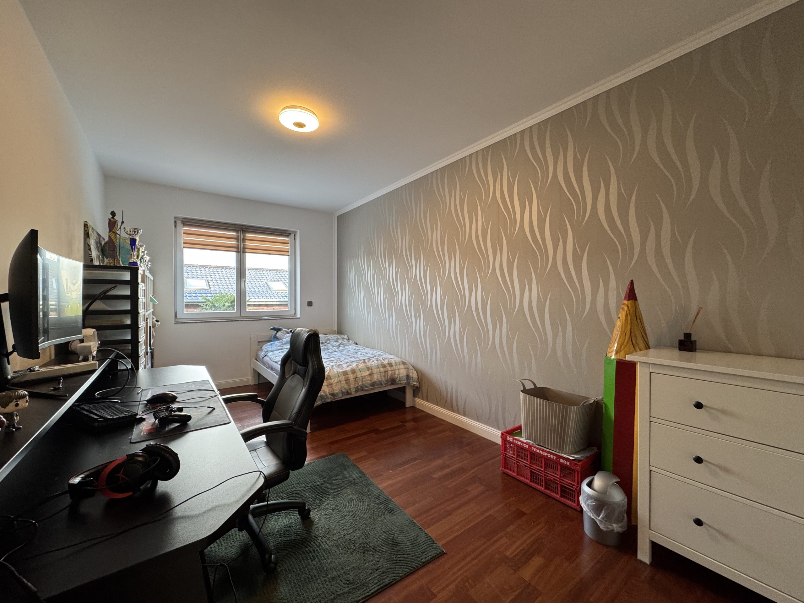 这是一套空间宽敞、非常适合家庭居住的联排住宅。开放式厨房连接大客厅,配有壁炉;阁楼设有独立衣帽间与高端自然采光卫浴;带顶露台与私家庭院相连。整体配置用料扎实、细节到位,居住舒适度高,非常适合长期自住的家庭。