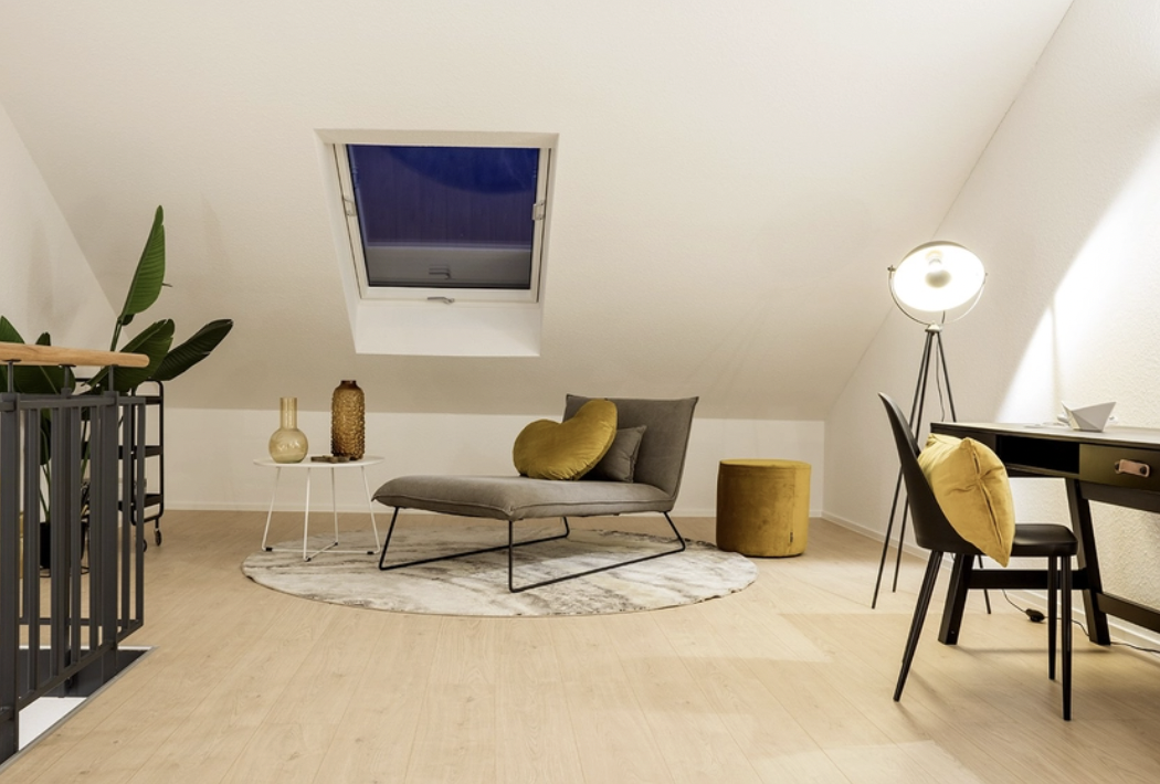 阁楼设开放式画廊,可作为休闲或家庭办公空间