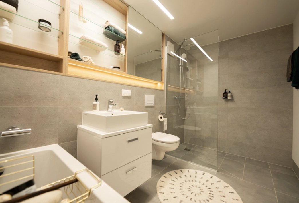 全套设计浴室,含无障碍淋浴、定制浴室柜及配件,另设客用卫生间