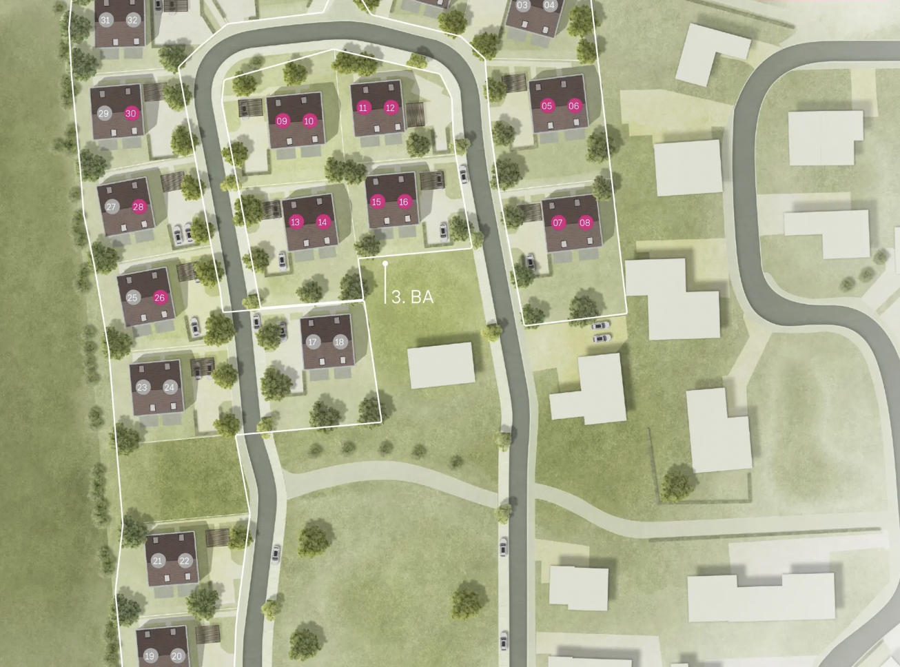 17 套家庭型双拼别墅,户型包括 Swing 与 Jazz,设计现代、功能实用
