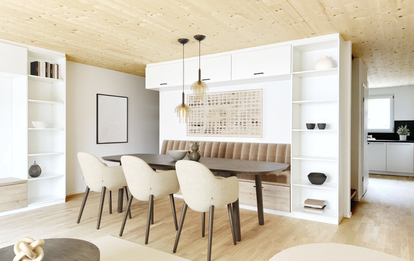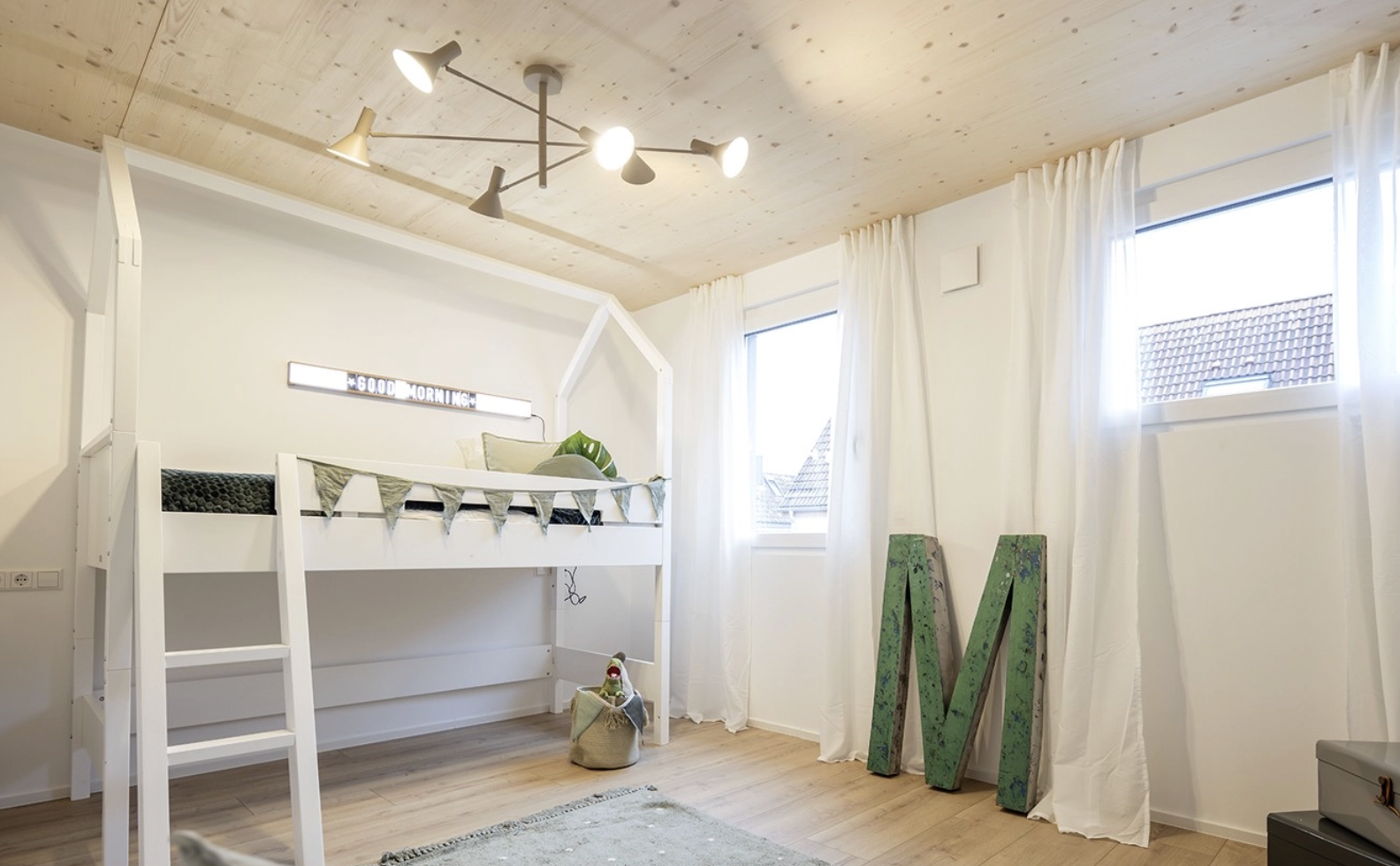 地暖 ♨️、电动卷帘、可见木质天花板、智能家居系统 🏠